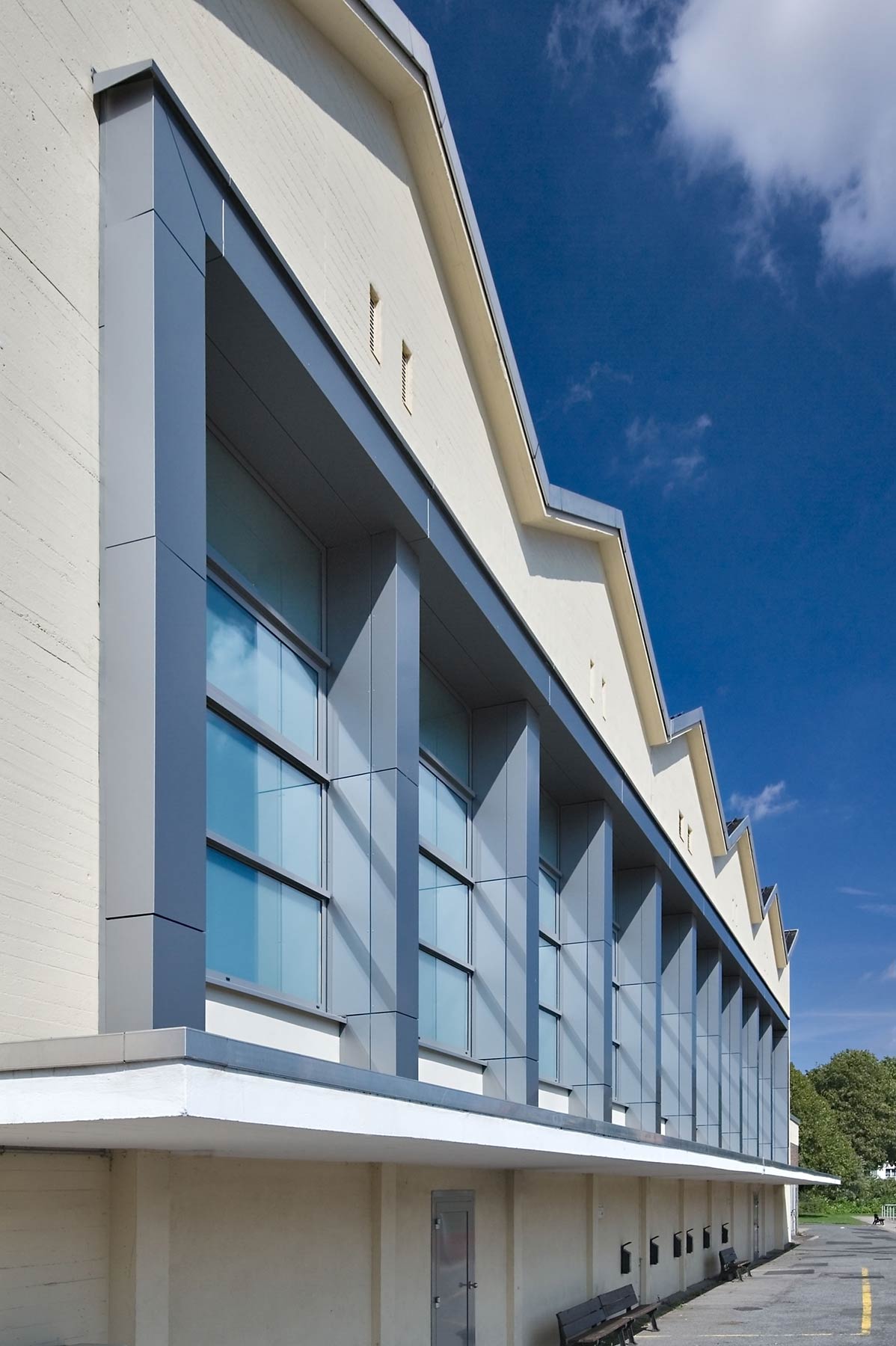 Im Zuge der Fassadensanierung einer Wittener Sporthalle wurden großzügige Fensterfronten integriert. Dadurch sinkt der Energieverbrauch zusätzlich.